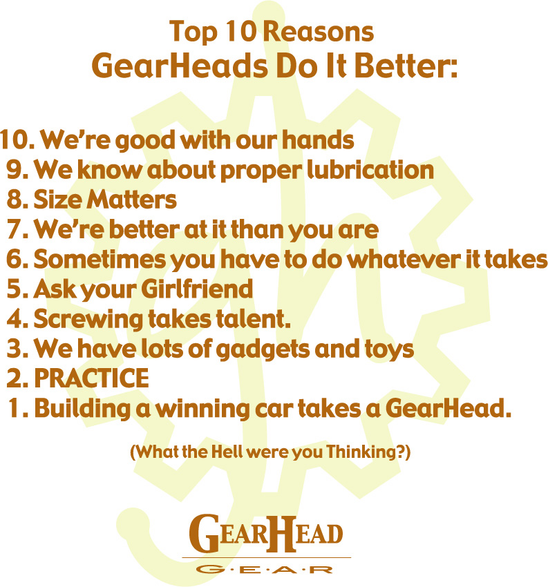 | All Shirts, logos, designs, and phrases are trademarks of GearHead GearTM |